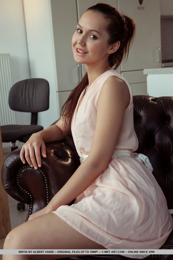Замечательная девушка с украинскими корнями снимается для горячих обнаженных фото. На снимки красавица пришла в легком розоватом платье и трусиках такого же цвета. Поначалу девушка показала свою сексуальность в одежде, но потом ей пришлось раздеваться. Не спеша, куколка начала со своих нежных трусиков, виднеющихся под платьицем. И вот одно движение руки, и девушка сдвигает трусики вбок, обнажая свою побритую пилотку.